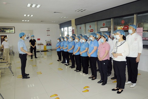 8月20日中午,博興餐飲公司西安市人民醫院餐廳,根據食品安全應急演練預案,組織進行了一次儗似食物中毒模擬演練,演練地點選在職工餐廳,餐廳全體員工參加,紅螺灣實業集團食品安全副總監閆衛權、博興餐飲公司食安質檢部總監袁建坤到演練現場觀摩,并就演練過程進行點評。